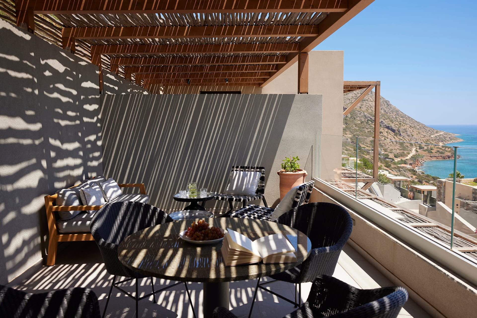 These natural-light flooded, luxuriously appointed 3-level villas, are located at the top of the resort offering unobstructed, spectacular views of Elounda Gulf and Spinalonga island. Enjoy the spacious 40 sq.m. private furnished outdoor area and the large fresh-water swimming pool. The spacious sea view bedrooms with king size beds and en suite bathrooms provide a relaxing atmosphere, making it the ideal place to unwind. Indulge yourself in the modern and cozy living room with majestic views of the sea or enjoy a private dinner under the stars. Also, a fully equipped Gym is provided at the lower level for your daily workout, a queen size bed, a separate bathroom and a home cinema with 55 inch smart TV. Our exclusive services will be provided throughout your stay.